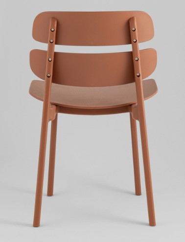 Современный обеденный стул в терракотовом цвете с минималистичным дизайном. Эргономичная спинка с двумя планками обеспечивает комфорт, а прочный материал гарантирует долговечность. Идеально подходит для кухни, столовой или современного офисного пространства, добавляя яркий акцент в интерьер.
